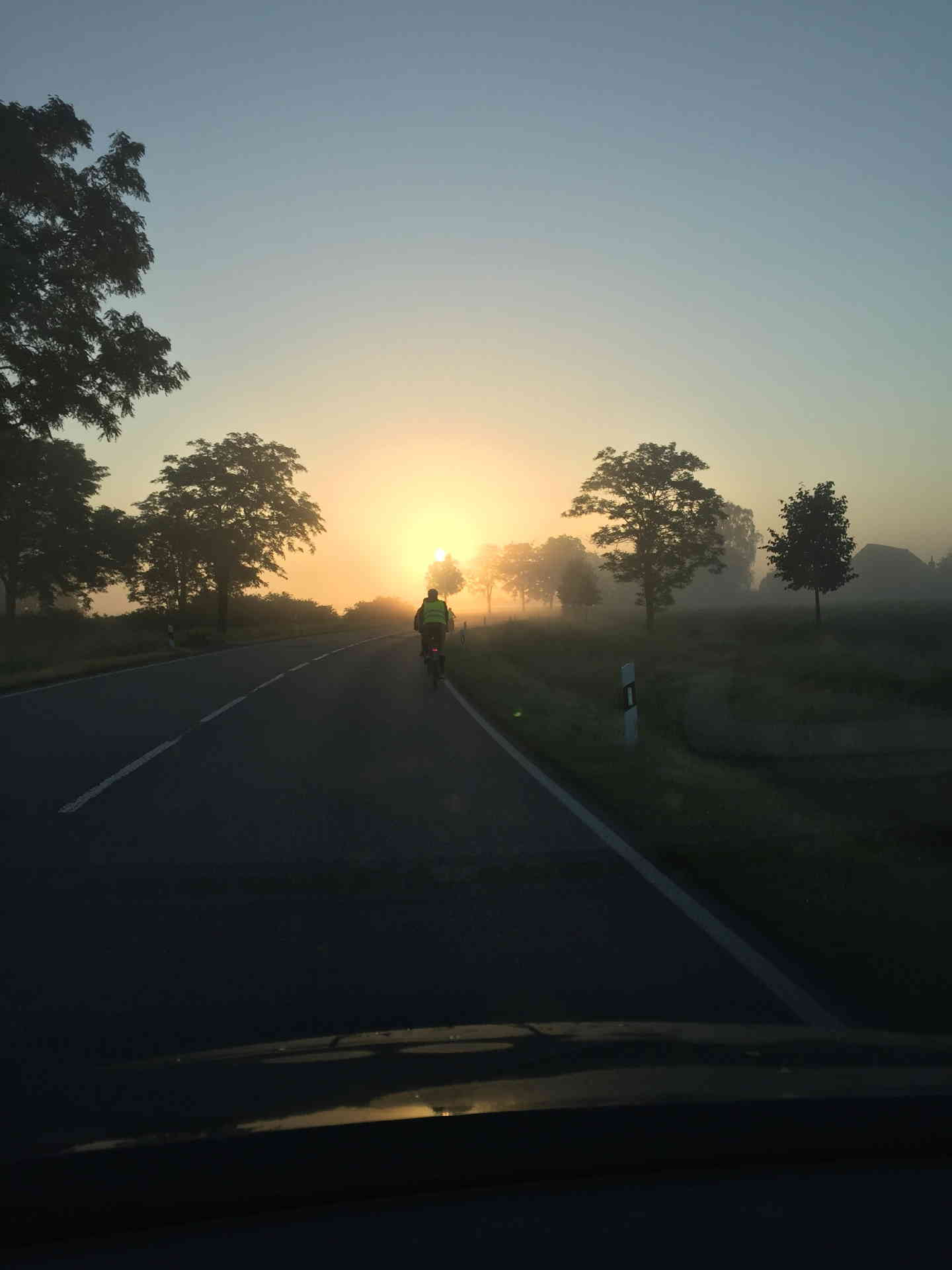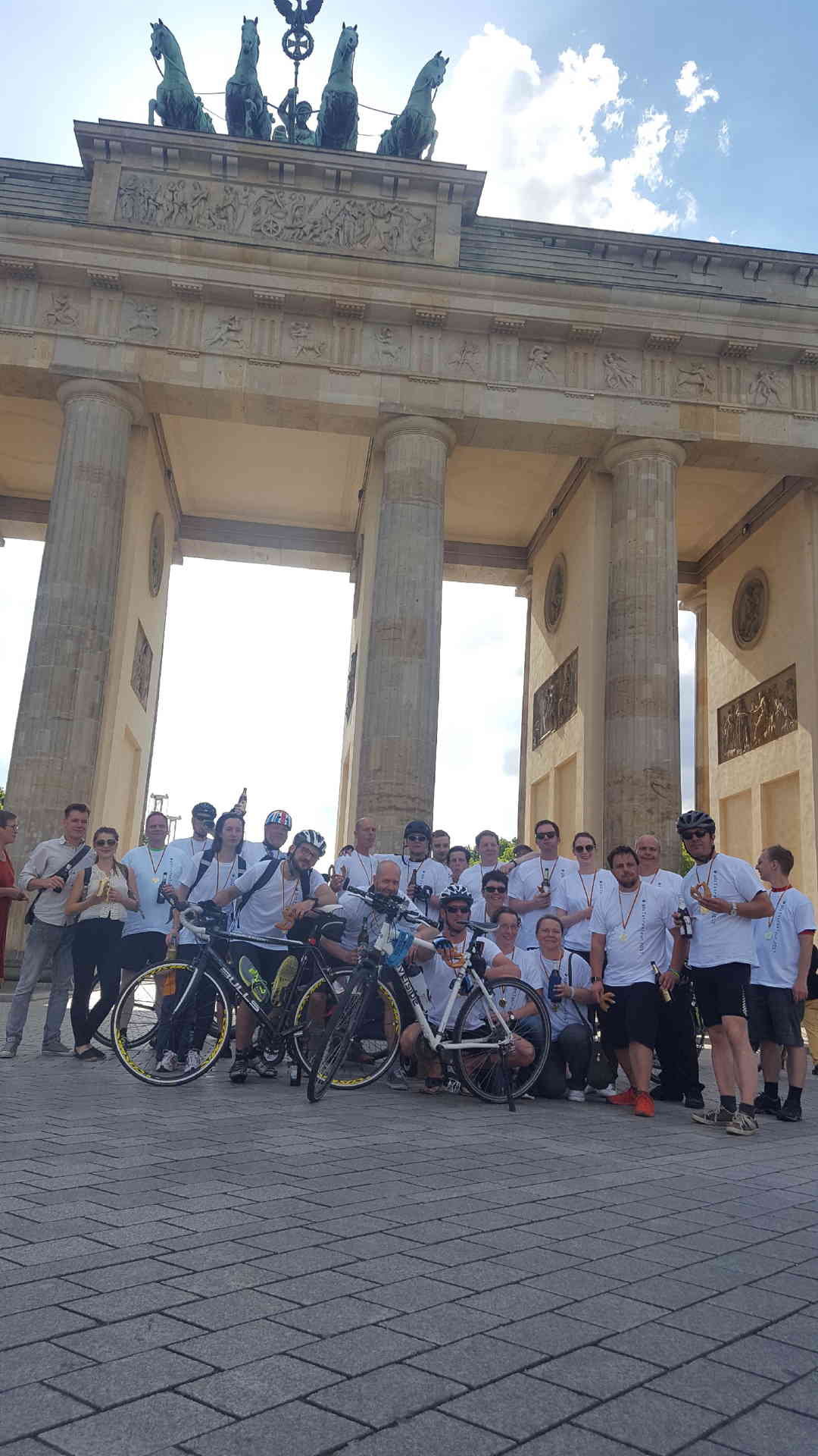 Auch während der Nacht war immer ein Team unterwegs. Die gesamte Tour in 30 Stunden zurück zu legen war das ehrgeizige Ziel, aber trotz teilweise schlechten Wetters, Umleitungen, Radpannen und anderen Herausforderungen kamen sie am folgenden Tag und bereits nach 28 Stunden am Brandenburger Tor in Berlin an.