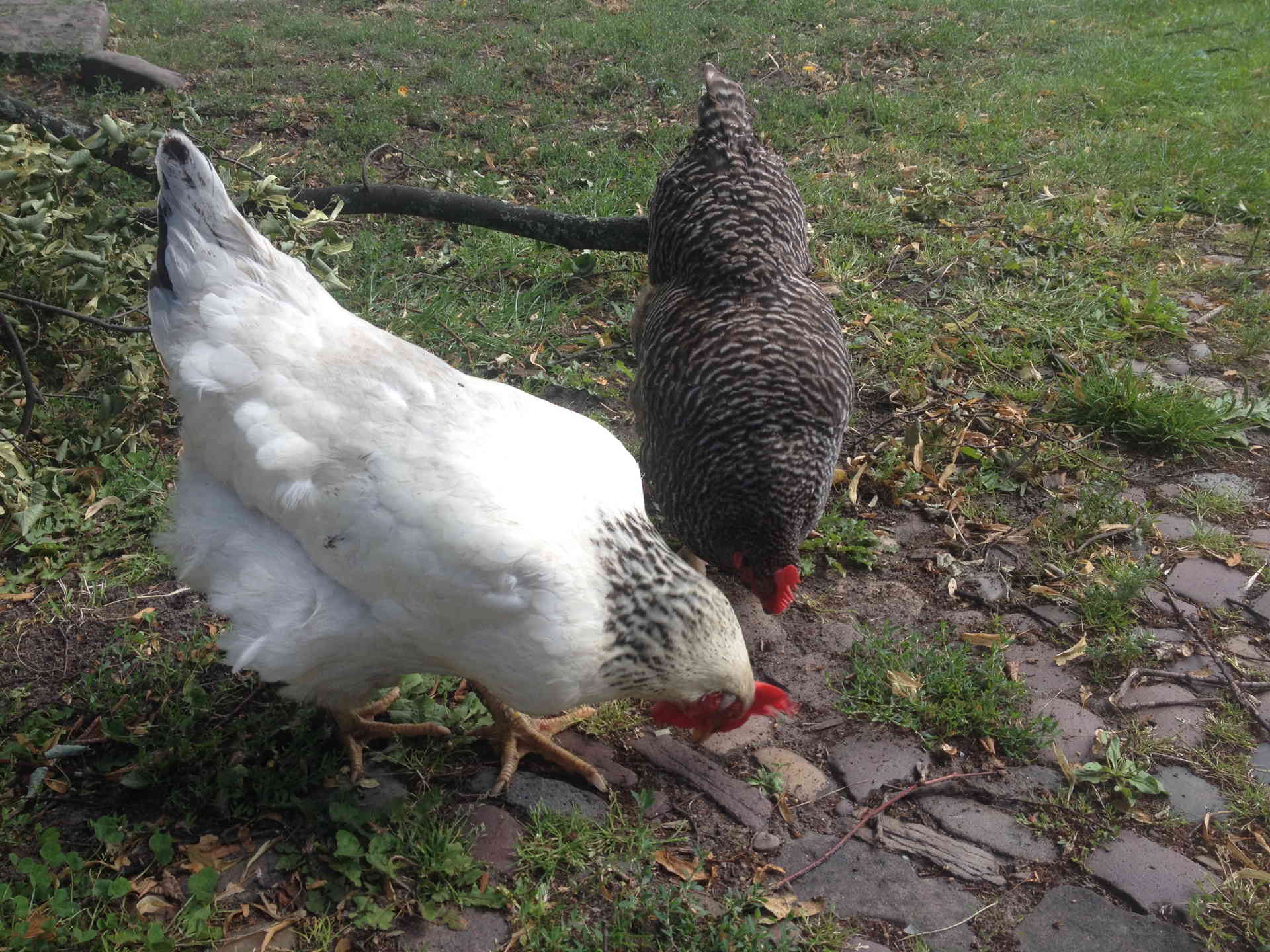 Aber Ronja, der Flämische Bouvier ist dabei, und schnell sind wir bei Geschichten von Hunden und Katzen, Fischen, Vögeln und Schildkröten … und stoßen unversehens auf die erste MerkWürdigkeit: 2 Hühner … mitten in der Altstadt! Auf dem Spielplatz vor der alten Bürgerschule picken sie – schwarz mit weißen Punkten und weiß mit schwarzen Punkten – selbstbewusst und unbeirrt von unserer Anwesenheit im Gras herum. Die freundlichen Töne, die sie dabei machen, klingen eher wie Gurren als wie Gackern. Fotografiert zu werden scheinen sie zu kennen: sie posieren, als ob sie etwas von bella figura verstünden … aber schnell sind wir wieder langweilig.