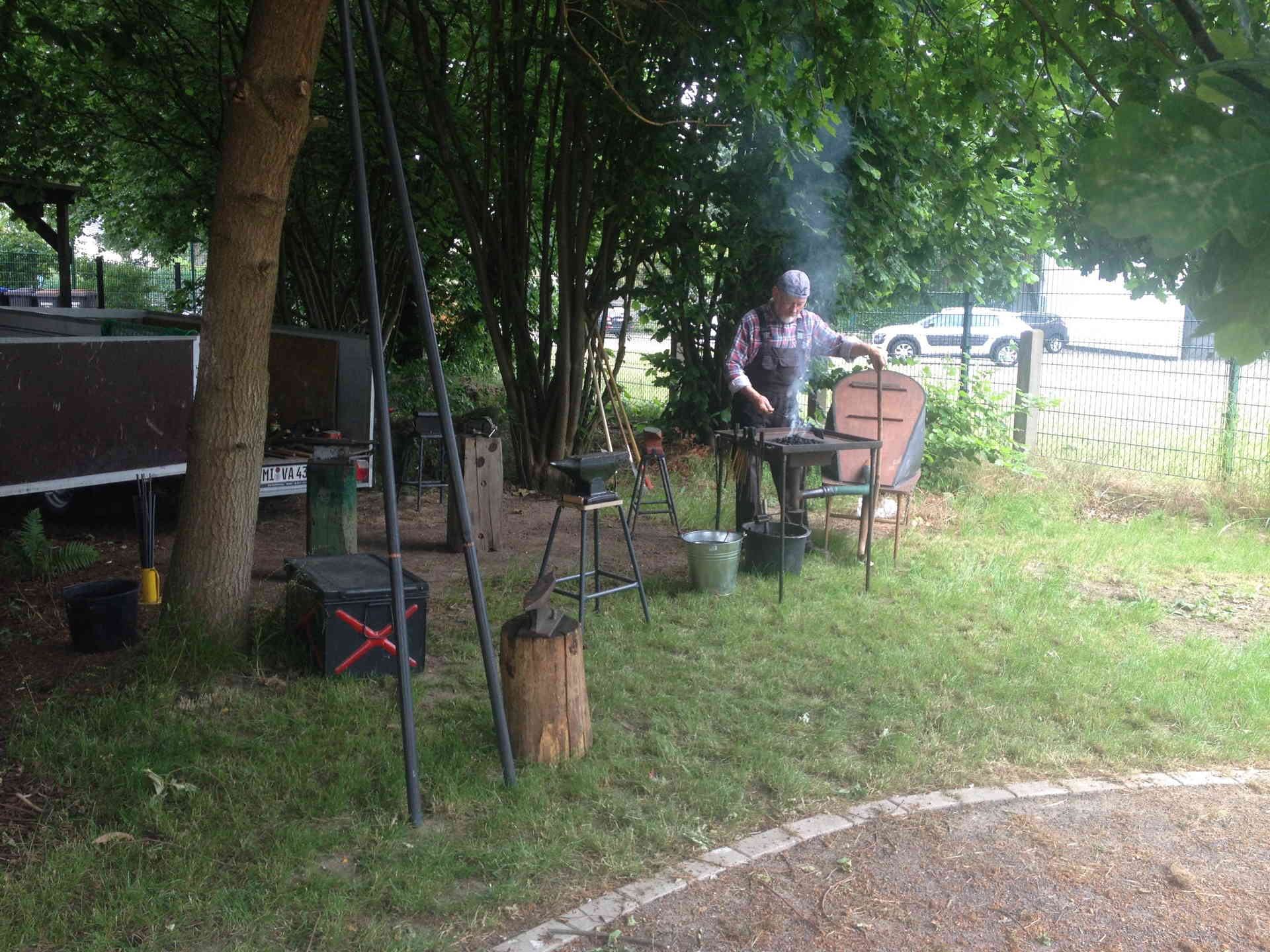 Leider haben wir vergessen, Fotos von den fertigen Werkstücken zu machen. Unverzeihlich! Aber, liebe Schmiede — wenn Ihr dies lest, dann schickt doch einfach ein Foto von Euren Kunstwerken und wo sie jetzt Verwendung finden. Wir tragen die Fotos hier dann noch nach.