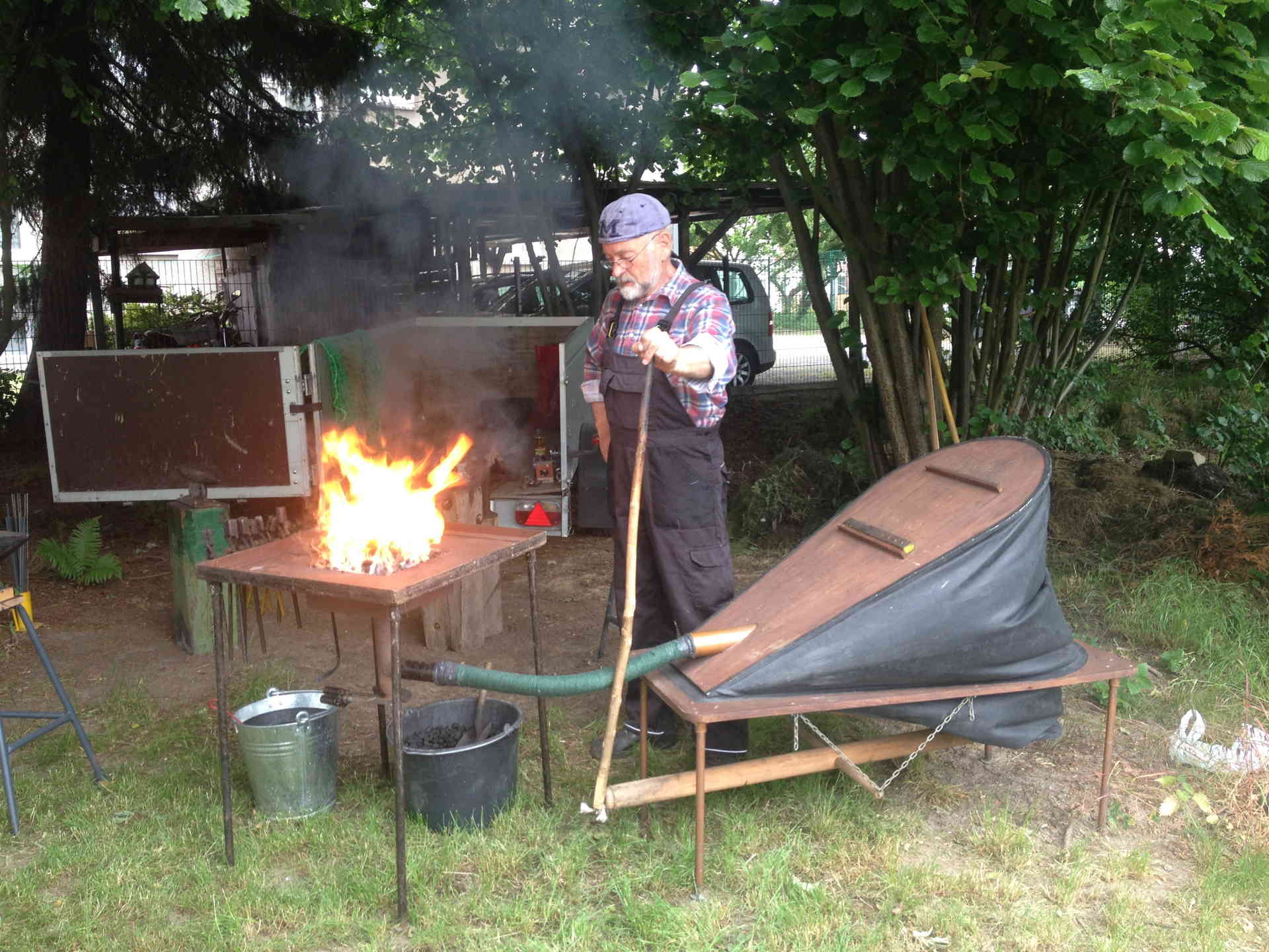Zum Schluss durften wir mit der Schmiedeglut unseren Grill anheizen. Dann wird die Schmiede abgebaut und fährt nach Hause.